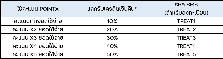 เมื่อแลกคะแนน POINTX เท่ายอดใช้จ่าย ตามเงื่อนไขที่กำหนด